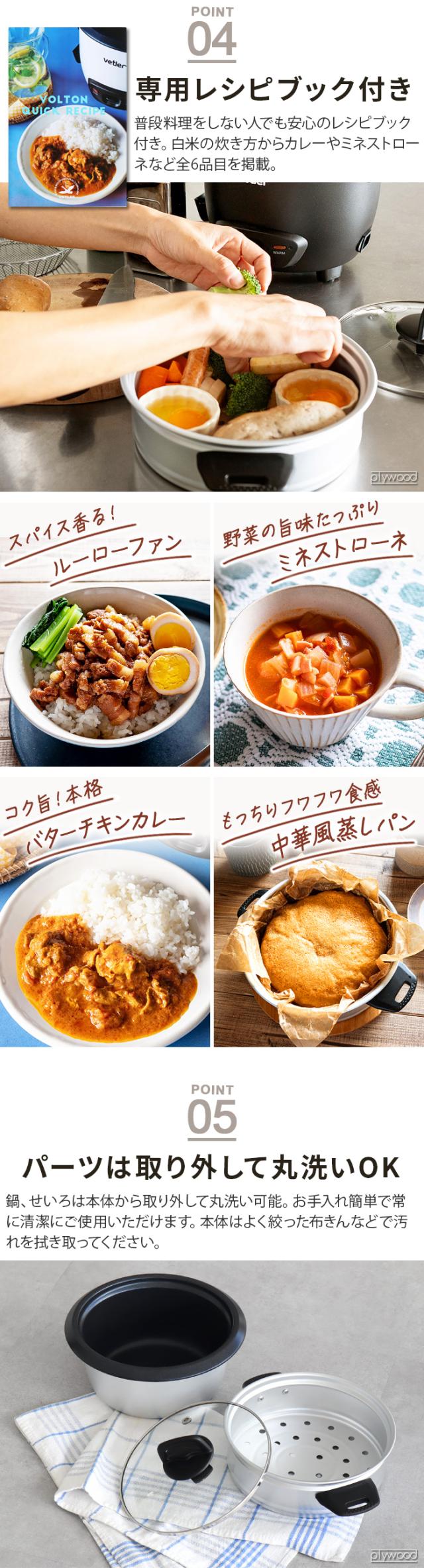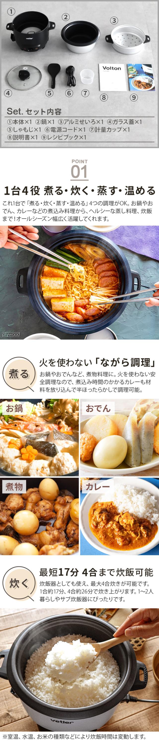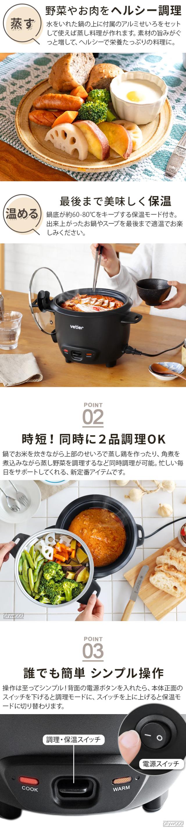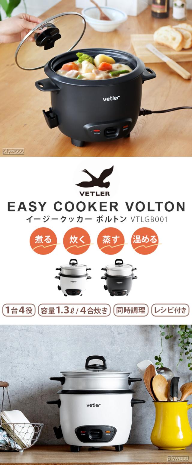 【選べる特典付】 電気鍋 2人用 1人用 一人暮らし ミニ 炊飯器 ヴェトラー イージークッカー ボルトン VETLER EASYCOOKER VOLTON VTLGB001 卓上 電気なべ 鍋 蒸し器 おしゃれ 4合 保温 時短 同時調理 ほったらかし調理 コンパクト 蒸し野菜【送料無料★P10倍】