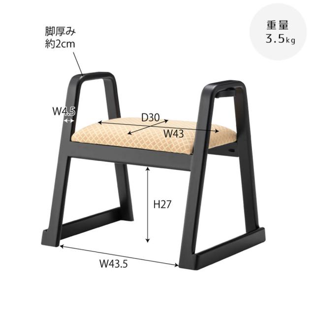 ステッキホルダーも付いてお年寄りや体の不自由な方でも安心してご利用いただけるコンパクト座敷スツールEn(エン)。