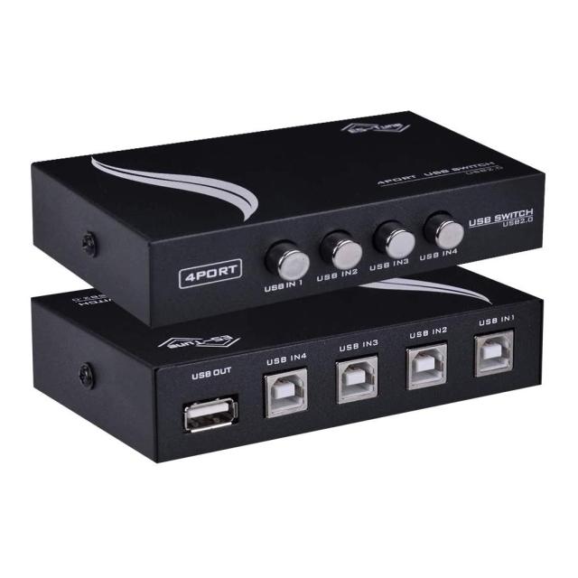 ◆商品名:ES-Tune USB 2.0切替器 USB切替器 手動 2.0対応 PC4台用 4入力1出力 4ポート切替器 プリンタなどを共有 小型 軽量
