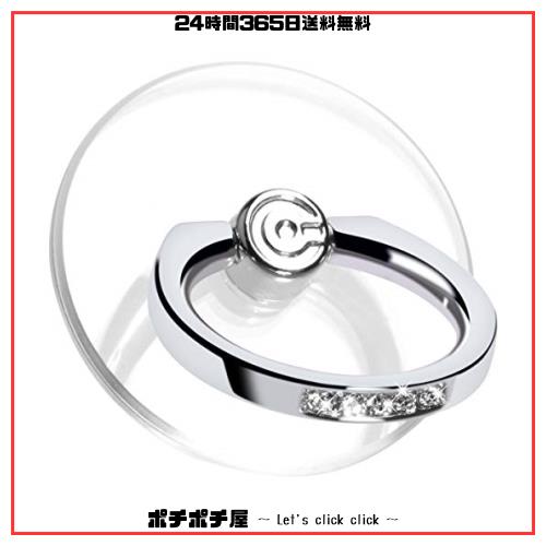 【2個入り】スマホリング 透明 携帯リング 薄型 360°回転 落下防止 スタンド機能 ホールドリング iPhone/Android各種他対応 (銀とダイヤ