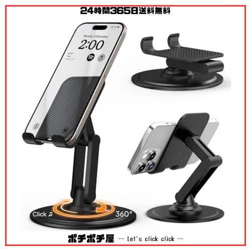 際立ったデザイン 卓上スマホホルダー?使いやすい360°回転、ぐらつかない滑り防止台、調節可能な放熱&折りたたみ式iPhoneスタンドホルダー、幅広い互換性。