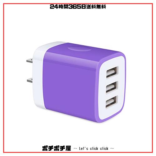 仕樣: 3ポート USB コンセント*1個(パープル) 電源入力:AC100V~240V 電源出力:DC5V/3.1A(3ポート合計) 充電器サイズ:32*38*42mm 重量:約45g