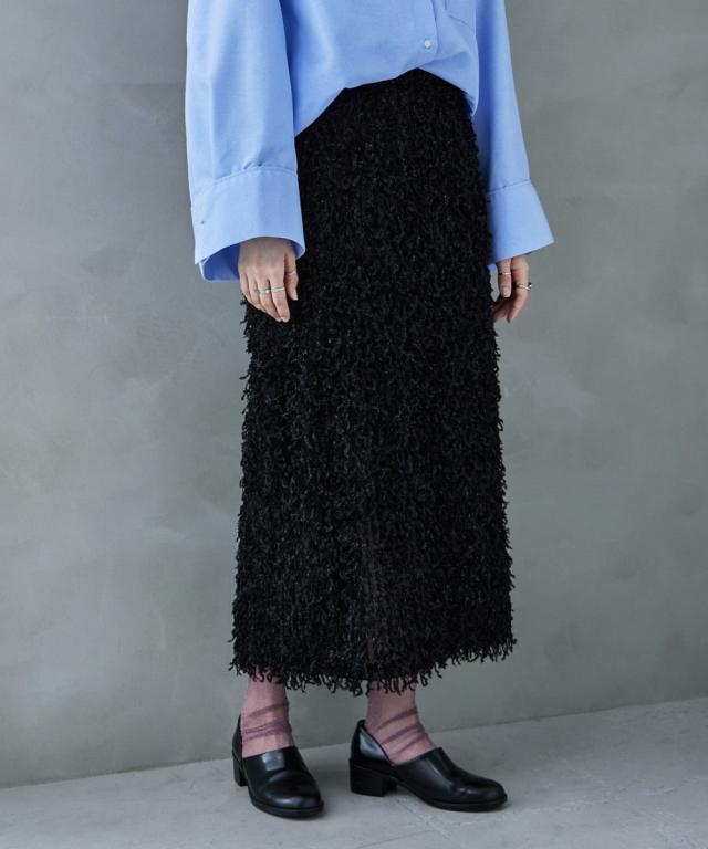 etoll. エトル ”脱ベーシック”。歩くたび煌めく、ラメミックスのフリンジスカート。