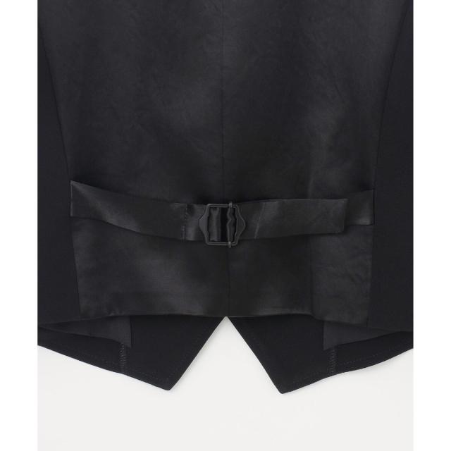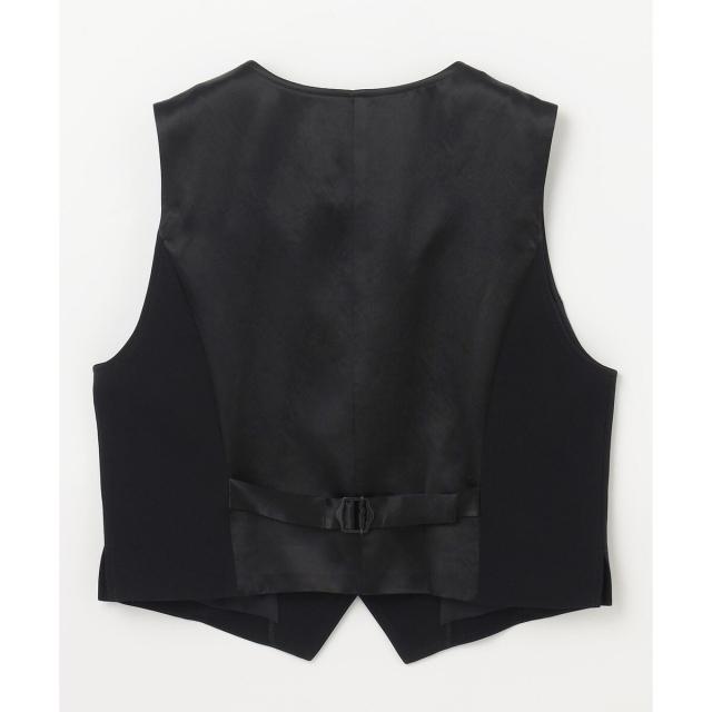 落ち感のきれいなトリアセ素材を使用した、カラーレスのショート丈ジレ。スリーブレス&短め丈のミニマルなシルエットが、トレンド感溢れるデザインです。バックスタイルはサテン素材を使用した、本格的なメンズのベストのようなディテールにこだわったデザイン。すっきり華奢見えするコンパクトなフォルムで、トレンドのワイドパンツと相性良く合わせていただける一枚に仕上げました。お揃いでお作りしたジャケットやパンツと合わせた綺麗めセットアップスタイルにはもちろん、お手持ちのスカートやワンピースにレイヤードすればマニッシュなスタイリングを楽しめます。