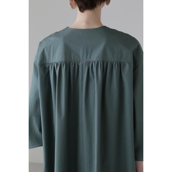 袖口のボリューム感とバックヨーク下からギャザーが入り、たっぷりとしたボリュームがポイントになります。