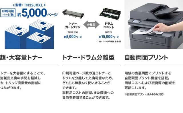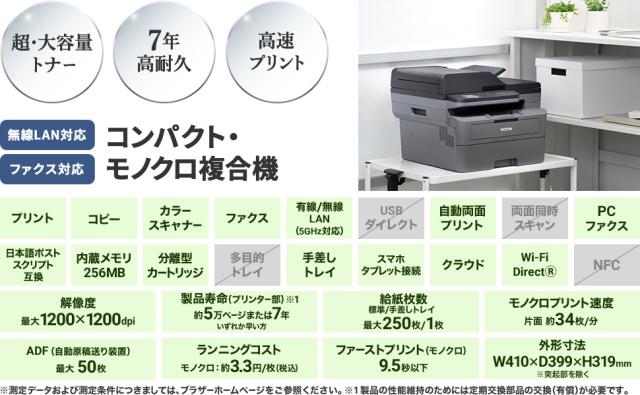 | A4モノクロレーザー複合機 (FAX/無線・有線LAN/ADF/両面印刷) MFC-L2860DW スペック情報 | |