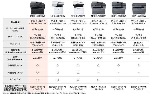 | A4モノクロレーザー複合機 (FAX/無線・有線LAN/ADF/両面印刷) MFC-L2880DW スペック情報 | |