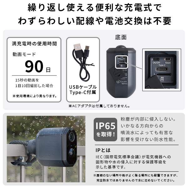 防犯対策や害獣対策、屋内でお子様の見守り用としてもお使いいただけます。