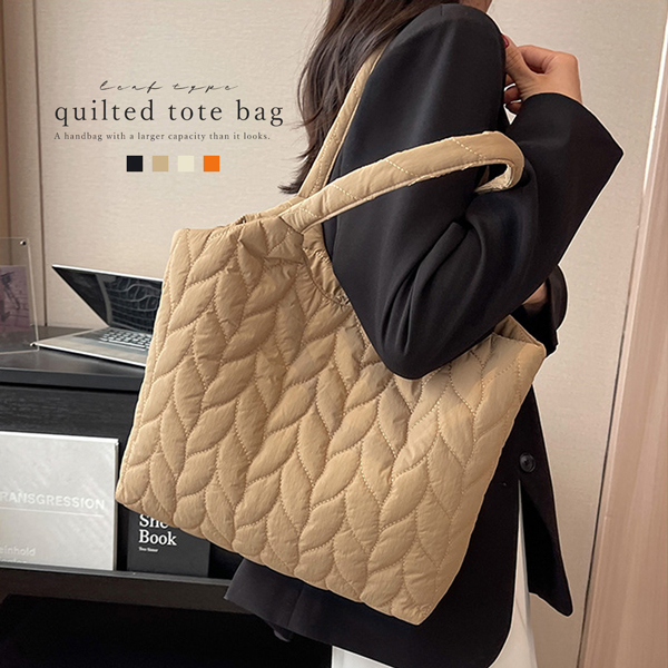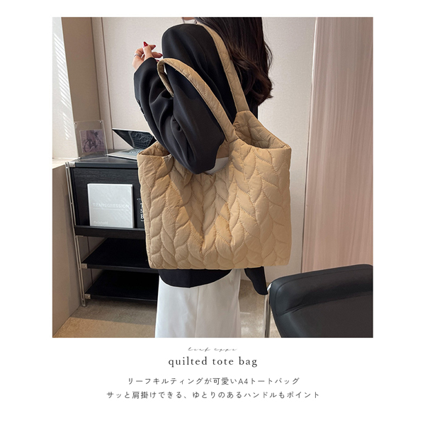 【今なら33%オフ!1,780円】トートバッグ レディース 大きめ 大容量 A4 通勤 通学 軽い 軽量 大きい シンプル リーフキルティングトート キルティングバック マザーズバッグ PC収納可 エコバッグ 学生 買い物 おしゃれ トレンド 春 夏 秋 冬