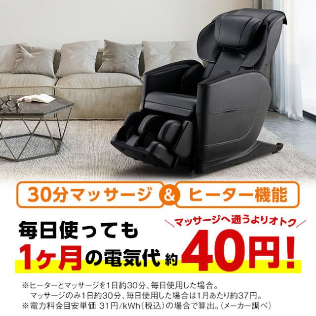 ●1か月の電気代(約)/40円(ヒーターとマッサージを1日30分使用した場合)、37円(マッサージのみ1日30分使用した場合)