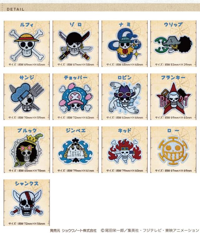 TVアニメ『ONE PIECE』のサガラ刺繍シールです。 13キャラクターをモチーフにした海賊旗です! タブレットやビニールバッグ等に… |