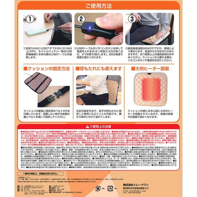 ●本製品はUSB(type-Aコネクタ)給電専用機器です。給電用ケーブルはクッションに付属しております。