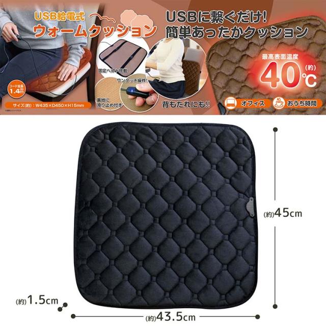 ウォームクッション USB給電式 ブラック 約43.5×45×1.5cm 60181に関する詳細なお問合せは下記までお願いします