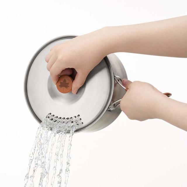 ●蓋には洗った食材の水切りや湯がいた後の湯が切れる湯切り穴付き