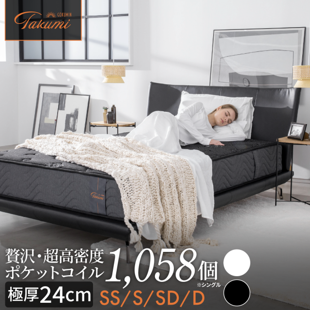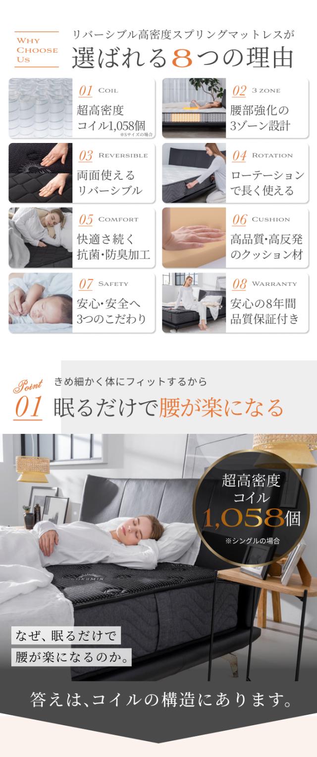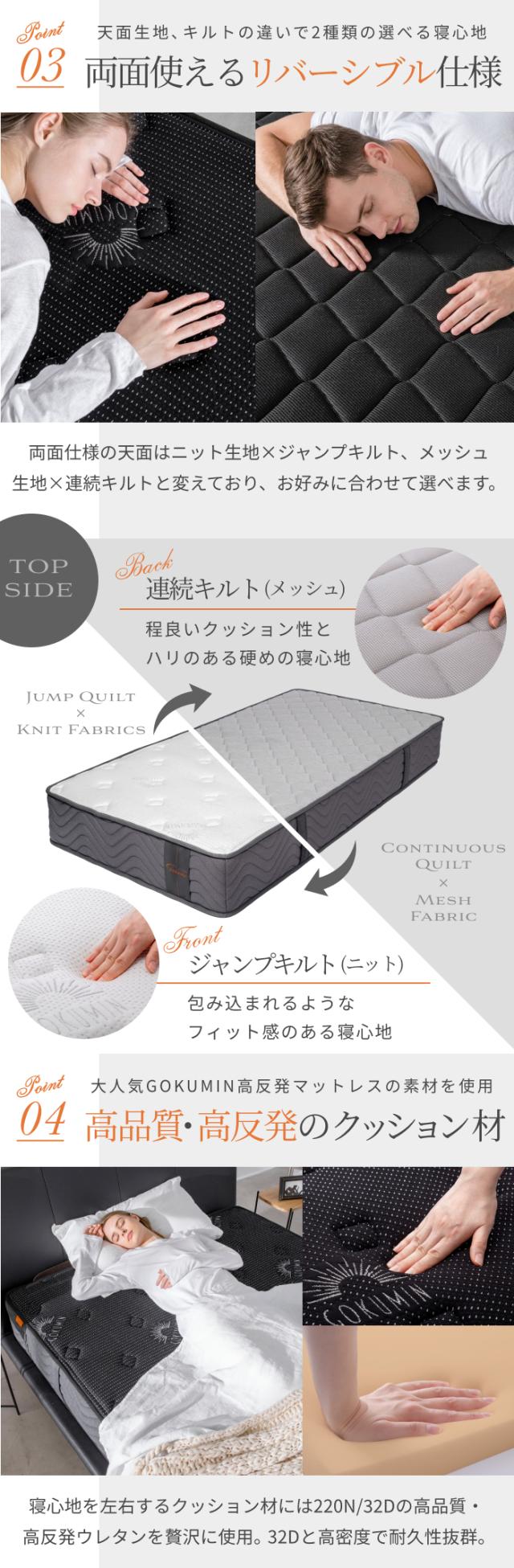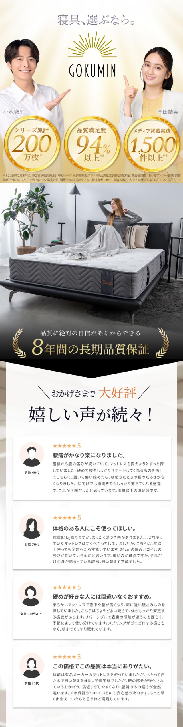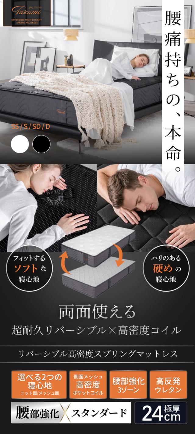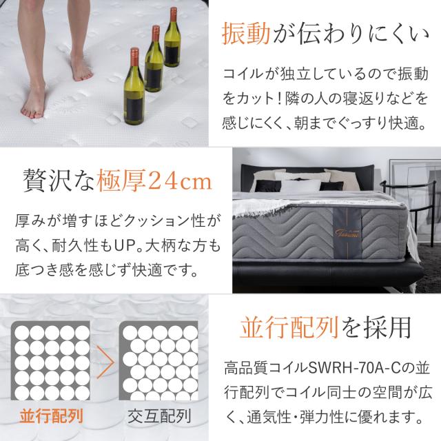 マットレス シングル(幅97×縦195×極厚24cm) 両面仕様 ポケットコイルマットレス スプリングマットレス ポケットコイル コイル コイルマットレス 高反発 硬め ベッド ベッドマットレス GOKUMIN