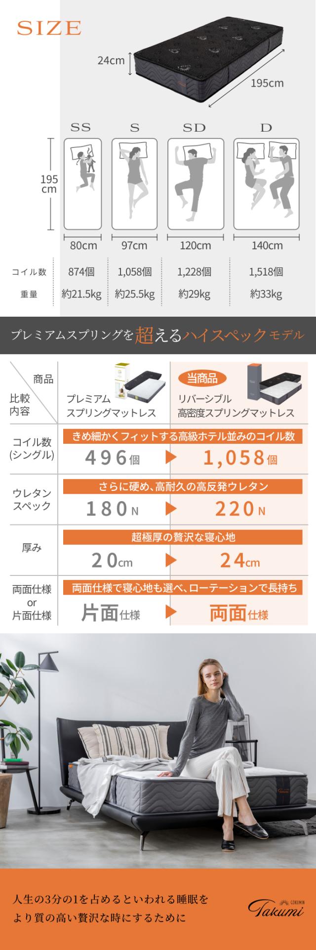【贅沢な厚み極厚24cm,中央を強化した3ゾーン設計】
