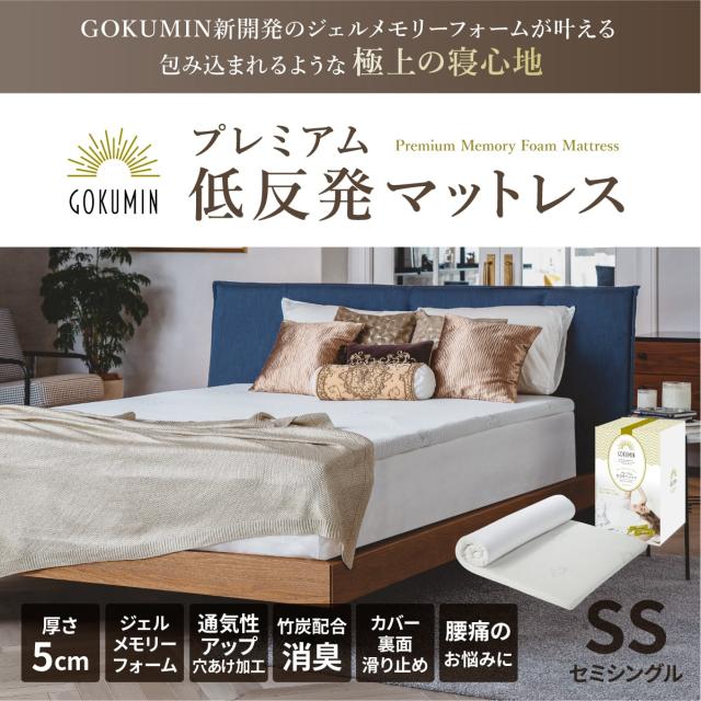 【史上最高!極上の寝心地】新開発低反発ジェルメモリー素材で、弾力性や復元力に優れ、体の凹凸に合わせて自在に変形します。極上のフィット感、よりバランスの良い体圧分散で腰痛の緩和に貢献します。【頭・腰・肩や背中への負担を軽減で爽快な朝】 高反発では固すぎる、低反発が好き。疲れが取れないなどのお悩みの方に最適な商品です。ベットや布団に+αがオススメです。【こだわりの感温性&通気性&消臭性】特殊ジェル粒子をブレンドし、温度変化に強い非感温性フォームを実現。夏でも冬でも快適です。通気性にもこだわり穴あき加工による更なる通気性を確保。さらに、竹炭による消臭までサポート【高級感あるカバー&2層構造】プレミアムの名にふさわしいラメ入り高級カバーを採用。フローリングでも滑りにくいノンスリップ加工はもちろん、2層構造やL字ファスナー、抗菌・消臭加工などこだわり抜いていいます【商品詳細】マットレス/付属カバー(洗濯可)/収納袋/日本語取扱説明書/よくあるご質問集/高級化粧箱、サイズ:幅80cm×奥行195cm×高さ5cm、重量:約4.5kg、【日本人技術者のこだわりをお確かめください】ゴクミン ごくみん