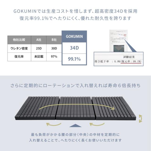 マットレス シングル 【GOKUMINマットレスで一番人気】 高反発 三つ折りマットレス プレミアム グランマットレス 2層 折りたたみ ベッドマットレス ベッドマット マットレストッパー トッパー