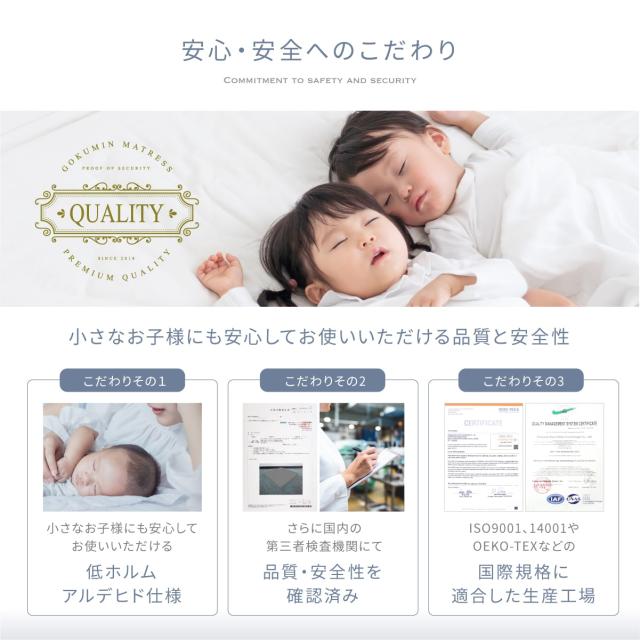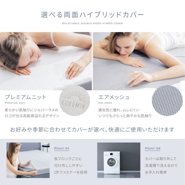 【収納便利×洗えるリバーシブルカバー】 取っ手付きで収納も便利、さらに夏・冬試せるリバーシブルカバー。毎日使うものだから、GOKUMINは専用の抗菌・防臭・低ホルムアルデヒド・通気性抜群のマットレスカバーであなたの快適な睡眠をサポート。【商品仕様】ご購入後12ヶ月のメーカー直営品質保証。製品サイズ:約97×195×10cm、 製品重量:約7.5kg、化粧箱サイズ:43×43×53cm、付属品:取扱説明書、Q&A冊子、高級化粧箱