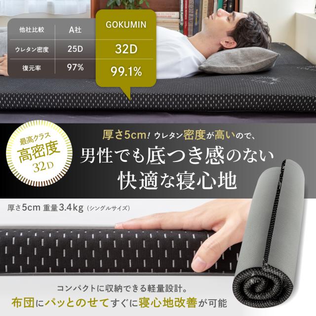 マットレス シングル(幅97×縦195×厚さ5cm) 男のマットレス 高反発マットレス 腰痛 マットレス ベッドマットレス マットレストッパー ウレタンマットレス