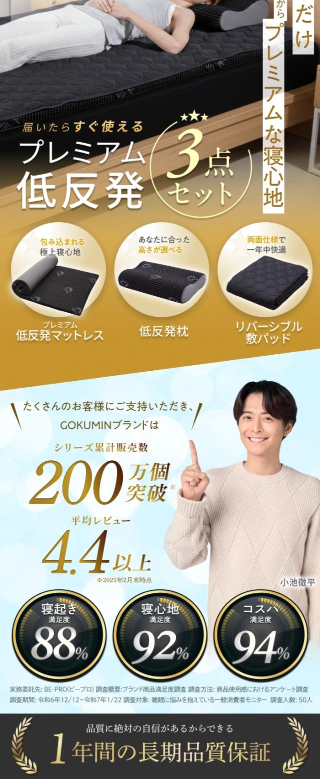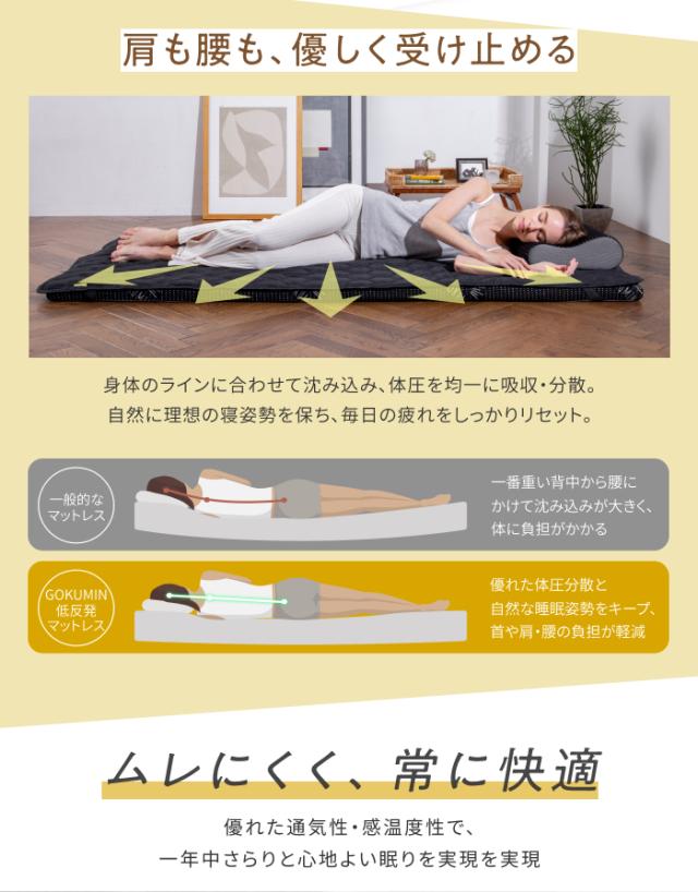 【GOKUMINぐっすり快眠3点セット】 シングル 寝具 マットレス + 枕 + 敷きパッド セット 寝具セット 敷布団不要 新生活 一人暮らし 睡眠の質向上 腰痛対策