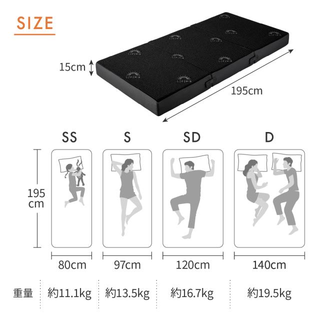 マットレス ダブル(幅140×縦195×極厚15cm) 究極の 4層 三つ折りマットレス アルティメイトマットレス 高反発 低反発 極厚 15cm 折りたたみ 三つ折り 三つ折 高反発マットレス 腰 背中 肩 負担軽減