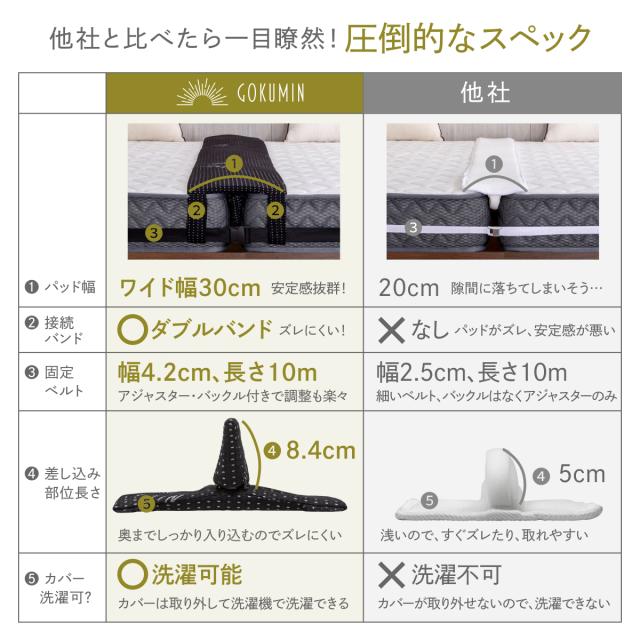 【マットレスの隙間を解決!】 GOKUMIN 隙間パッド ワイド幅 すきまパッド + マットレスバンドで強力連結/固定!ズレないから添い寝も安心 家族で快適快眠 ズレ防止
