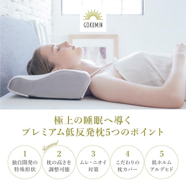 【お客様に選ばれGOKUMIN枕で1番人気】プレミアム低反発枕 4段階高さ調整 日本企業 1年保証 ブラック ホワイト 竹炭配合 蒸れにおい対策 ストレートネック 首のこり
