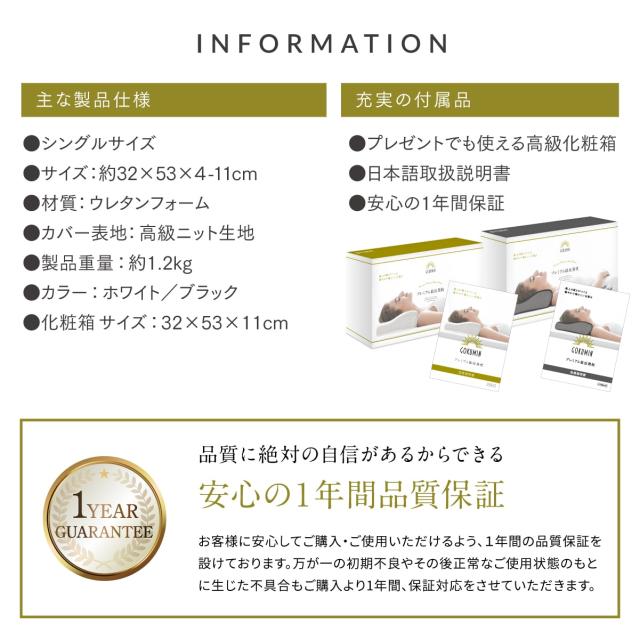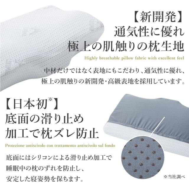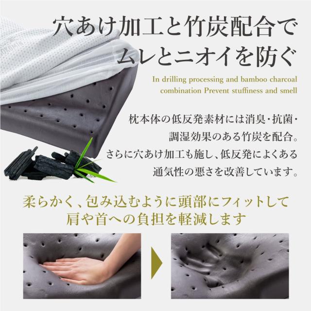 【上質な枕生活】上質な枕を開発するため、「新開発低反発素材」×「人間工学に基づく3D特殊形状」×「竹炭による消臭機能」×「枕ずれ防止のピローストッパー」で上質の寝心地を手に入れられます。【悩み解消!体が喜ぶ爽快な朝】こんな方におすすめ。ストレートネックで困っている。今使っているまくらは合わないなどのお悩みの方にも最適な商品です。高い位置と低い位置をお好みに合わせて利用でき便利です。【この肌ざわり。画期的。】新開発のこだわりの高級ニットカバーは、シルバーラメ入りのロゴが質感ともに高級感溢れるデザイン。通気性にも優れ、洗濯機で簡単にお手入れ可能です。裏地には環境にやさしいシリコンで滑り止め加工も施しています。【だから安心!日本企業1年間品質保証】ご購入後12ヶ月のメーカー直営品質保証。初期不良もその後の不具合も安心してお使いいただけます。
