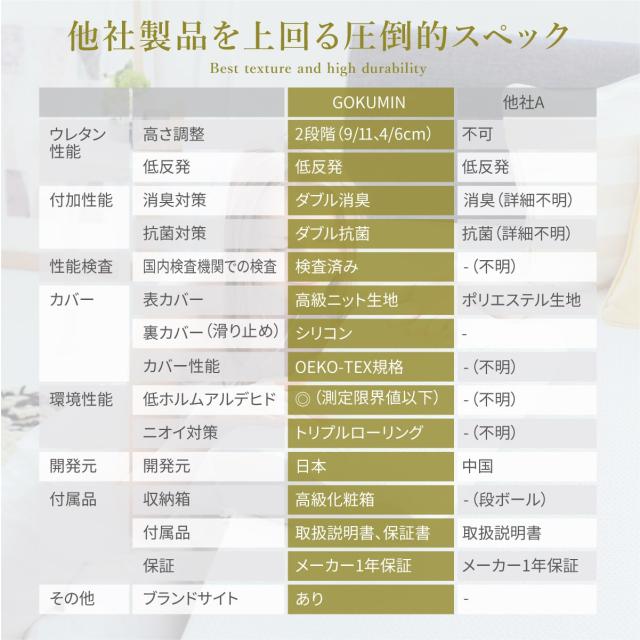 | 素材 | ○中材:新開発低反発素材 ○カバー生地:高級ニット生地(レーヨン30%ポリエステル70%) |