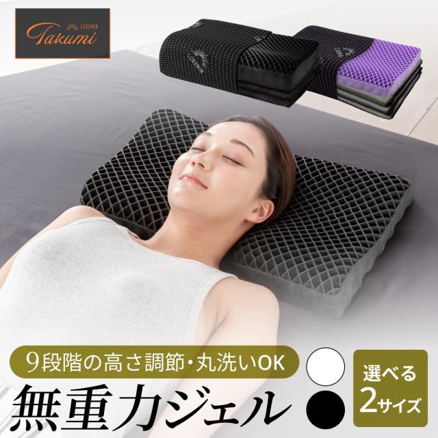 【枕難民に届けたい】9段階の高さ調整ができる無重力ジェルピロー TPE素材 日本企業 1年保証 ブラック ホワイト 体圧分散