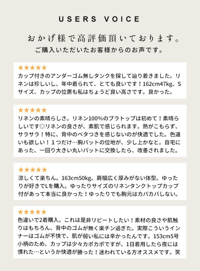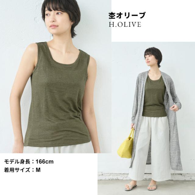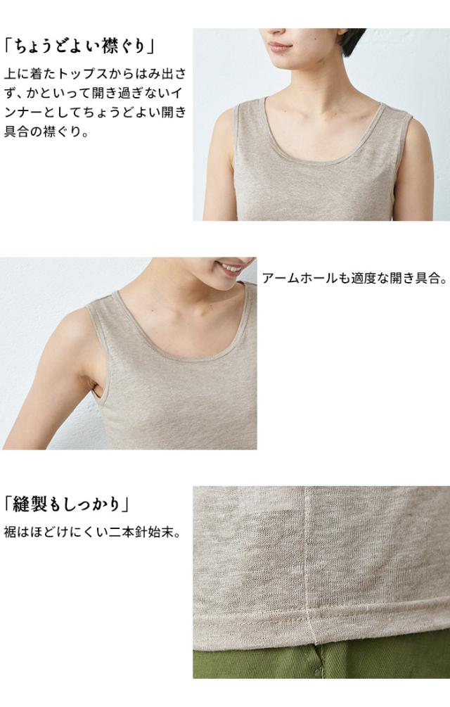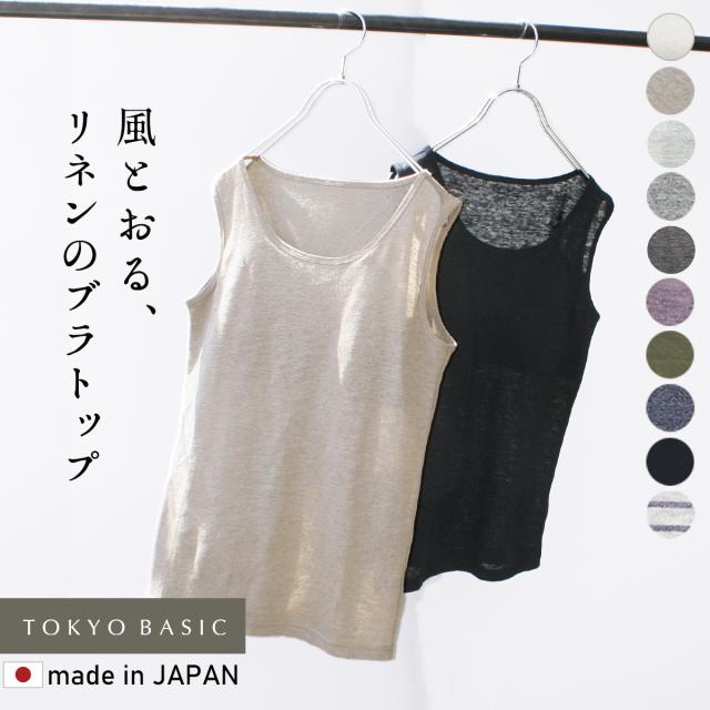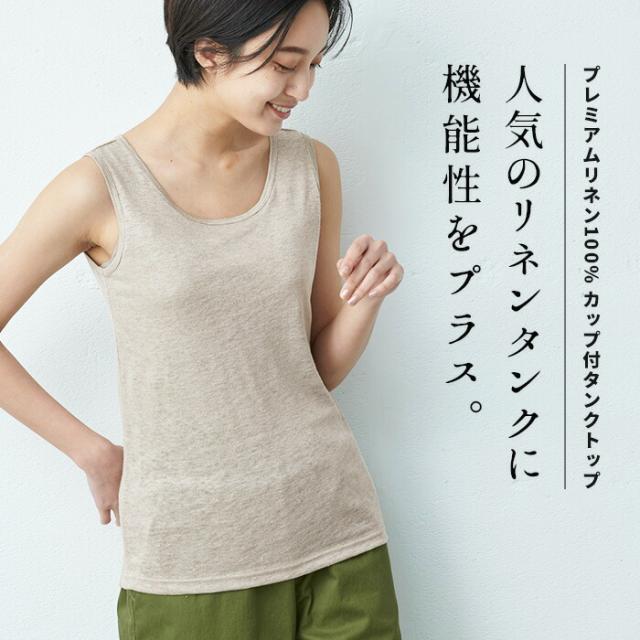 プレミアムリネン100% カップ付 タンクトップ 日本製 / カップ付き タンクトップ アンダーゴムなし ブラトップ 麻100 天然素材 パッド付き パット付 肌着 下着 通気性 速乾 抗菌 ストレッチ 春 夏 秋 下着