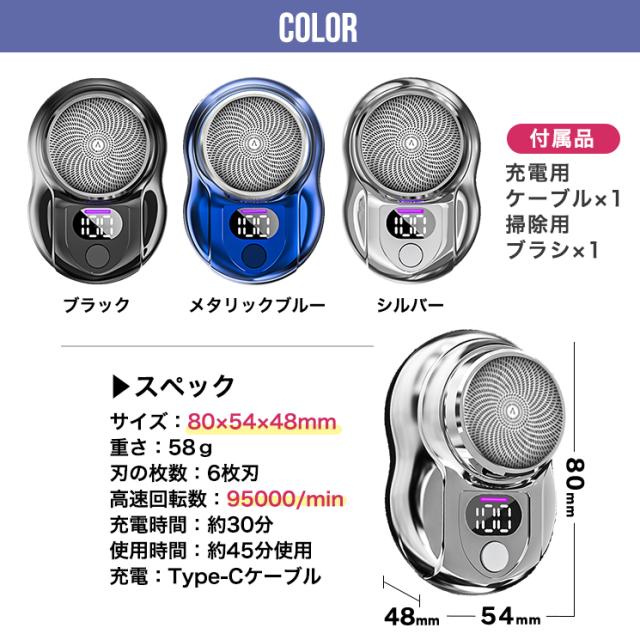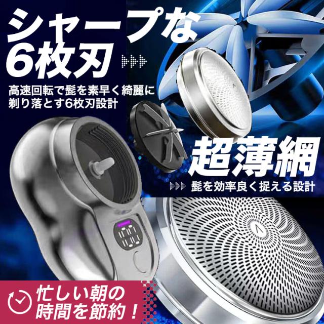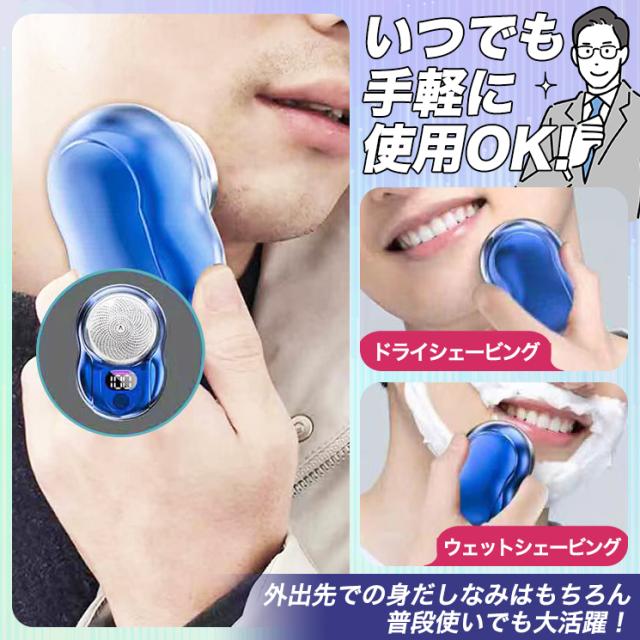 小型 電動シェーバー コンパクト 電気シェーバー 充電式 乾湿両用 ミニシェーバー 軽量 ひげそり 6枚刃 回転式 携帯髭剃り 旅行 出張 車内常備 ビジネス usb充電 電気カミソリ携帯 便利 お風呂剃り