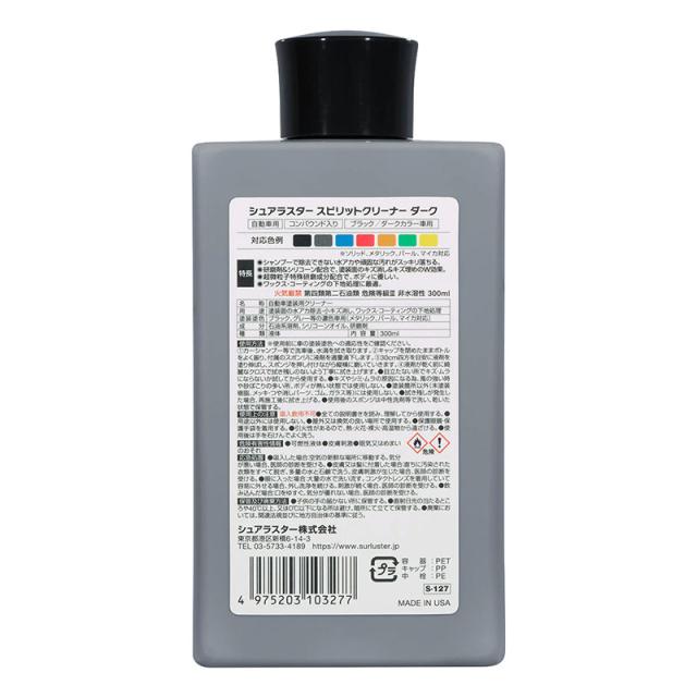 スピリットクリーナーダーク 300ml 水アカ落とし 小傷 ブラック/ダークカラー濃色車用 車ボディ マイカ塗装車対応 シュアラスター S-127