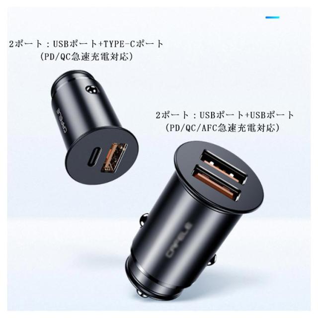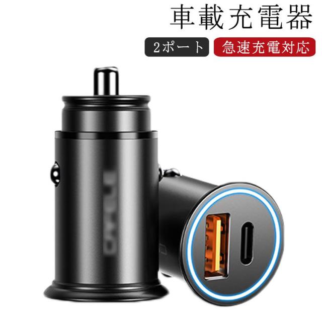 急速充電対応 カーチャージャー 車載 充電器 2ポート QC急速充電対応 PD急速充電対応 シガーソケット USBポート TYPE-Cポート 携帯充電器 車 充電器 USB 充電アダプター 急速充電 同時充電 スマホ タブレット アダプター 送料無料