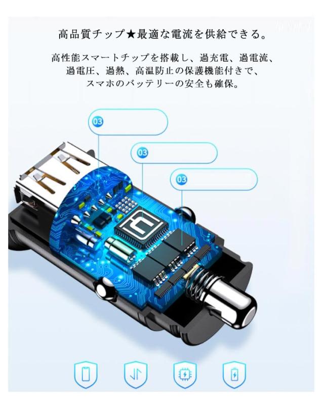 | (商品名)カーチャージャー(急速充電対応) (対応電圧)12V-24V (ポート数)2ポート (素材)合金 (特徴)スマホ、タブレットなど様々な電子機器を同時に充電可能。強力スプリング内 蔵、しっかりと固定できます。高性能スマートチップを搭載し、過充電、過電流、過電圧、過熱、高温防止の保護機能付きで、スマホのバッテリーの安全も確保。 | |