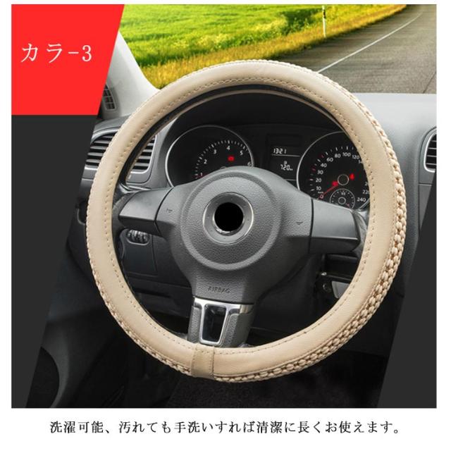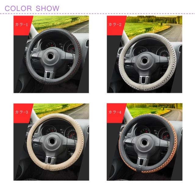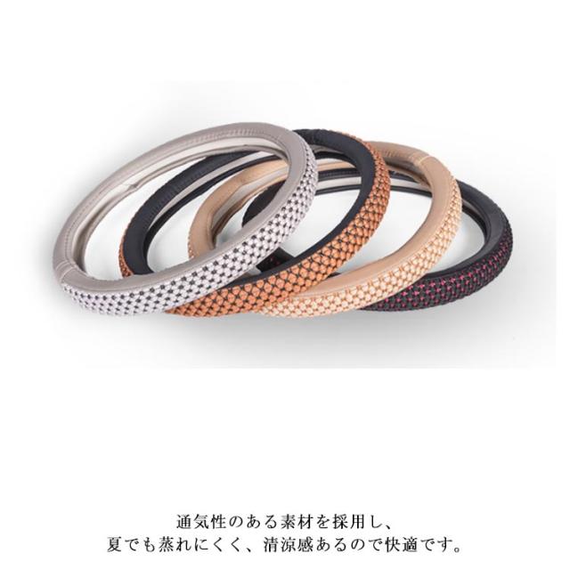 ステアリングカバー ハンドルカバー 車内用品 カー用品 内装パーツ 軽自動車 普通車 乗用車 トラック 自動車内装 お洒落 簡単装着 通気性 滑り止め 汚れ防止 夏用 水洗い