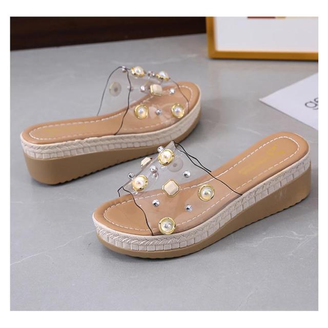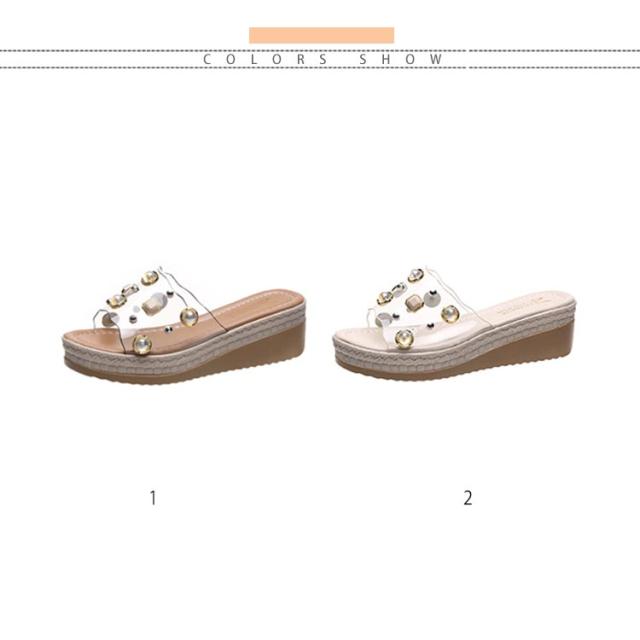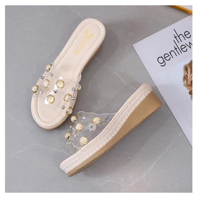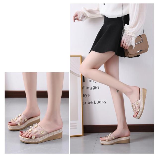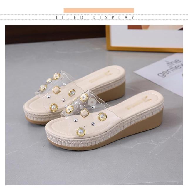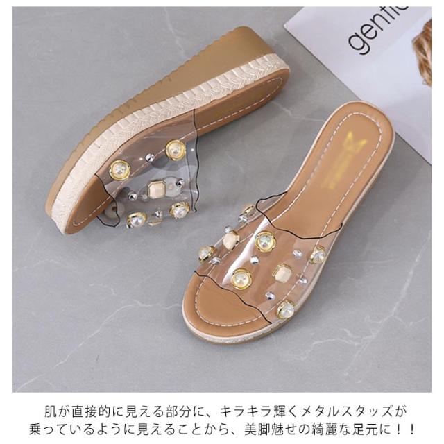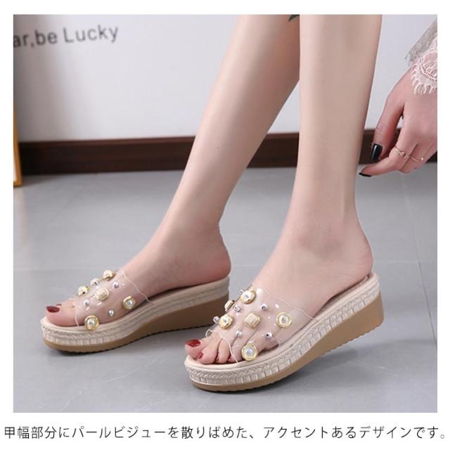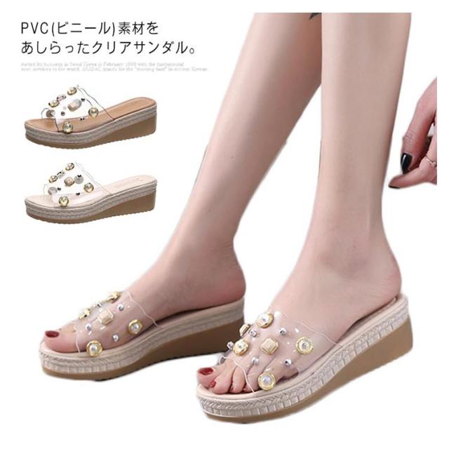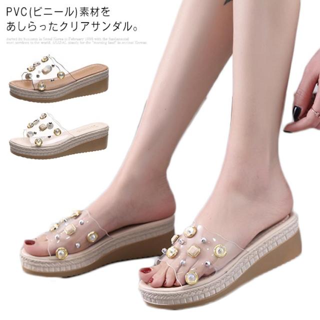 クリアサンダル ウェッジサンダル パール 5cmヒール ミュール サンダル ウェッジソール ハイヒール 厚底サンダル 脚長 美脚 夏 靴 おしゃれ 軽量 レディース 歩きやすい