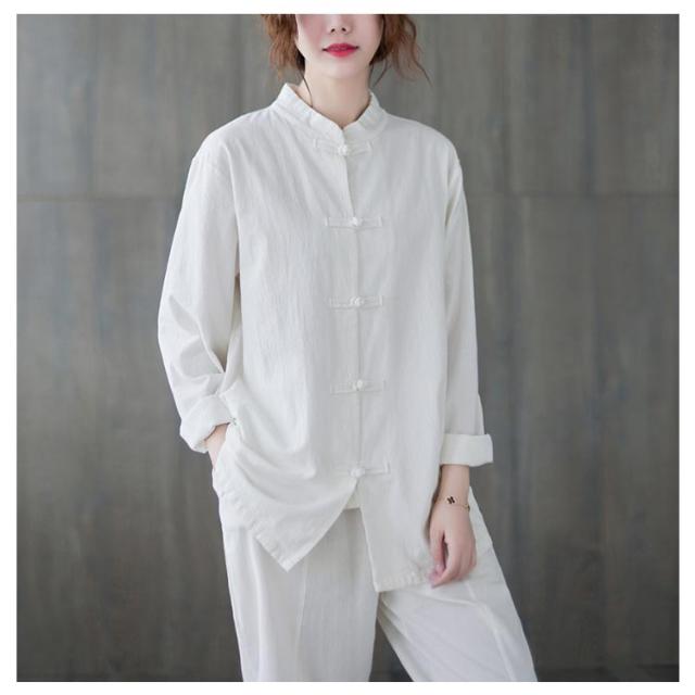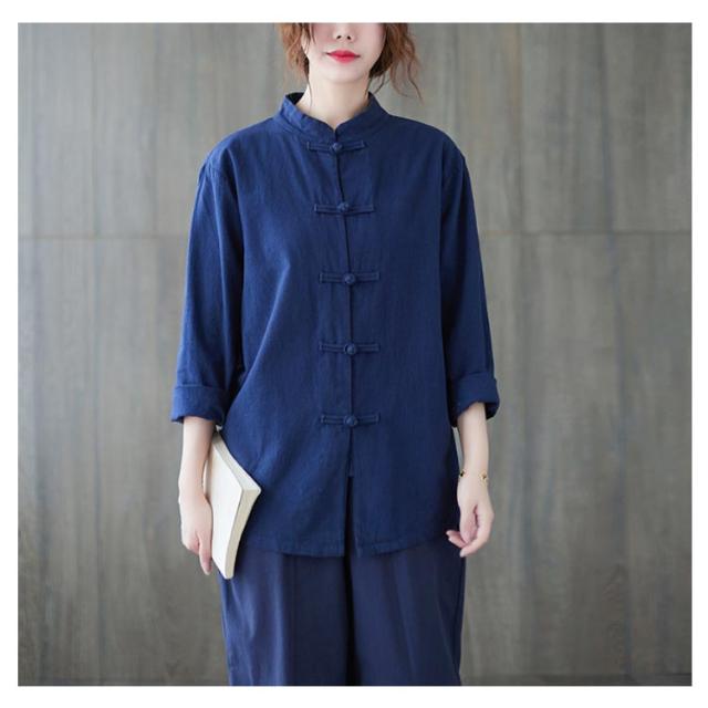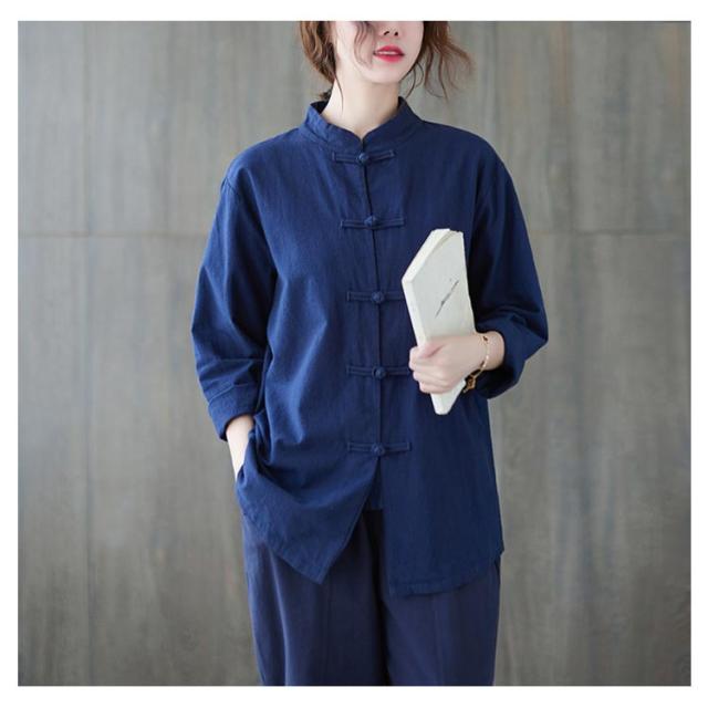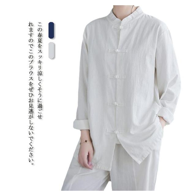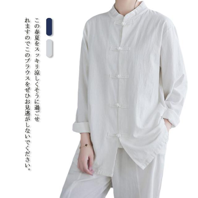 チャイナボタン リネンシャツ 立ち襟 長袖シャツ チャイナ風シャツ レディース 長袖 綿麻 チャイナ服 トップス ブラウス カジュアル シャツ 無地 大きいサイズ 春物 秋物 かわいい 新作 送料無料