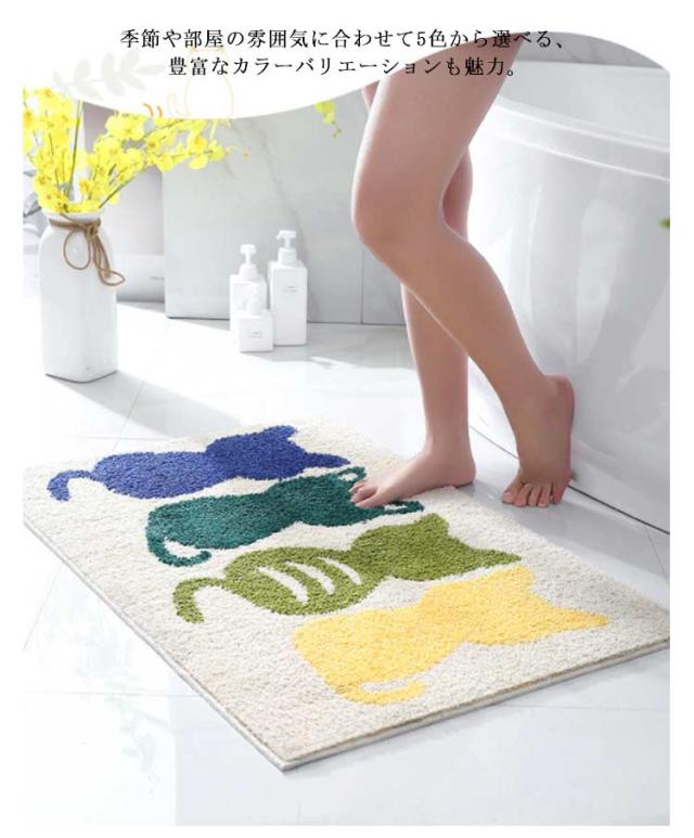 バスマット 速乾 バス マット 吸水 玄関マット 洗面所 マット 浴室マット 洗える 約50×80cm お風呂 抗菌 防臭 おしゃれ シンプル ふわふわ サラサラ 北欧風 滑り止め 防臭 インテリア かわいい 猫 ネコ