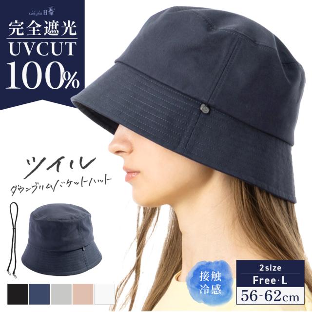 ツイルダウンブリムバケットハット(255-1)帽子 レディース 大きいサイズ バケットハット バケハ 完全遮光 遮光100% UVカット 日よけ かぶーる日傘(かぶる日傘) 春 夏 春夏 母の日 UV あご紐 旅行 運動会 自転車でもあご紐で飛ばない