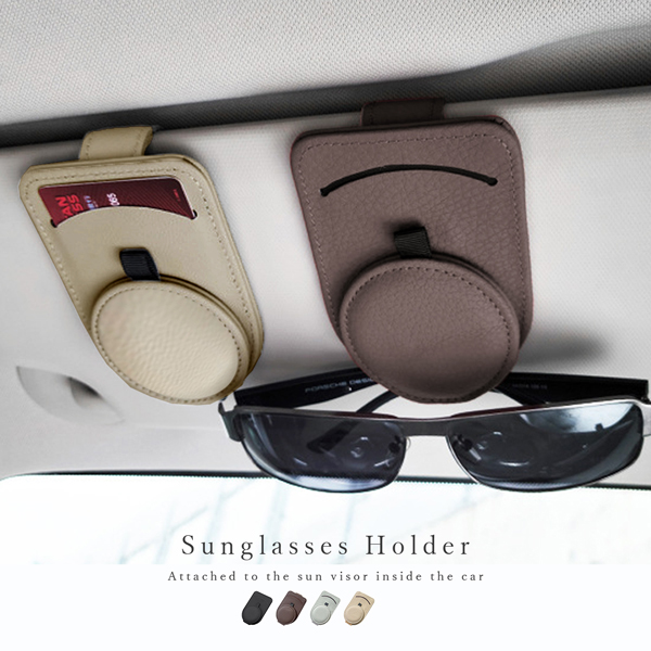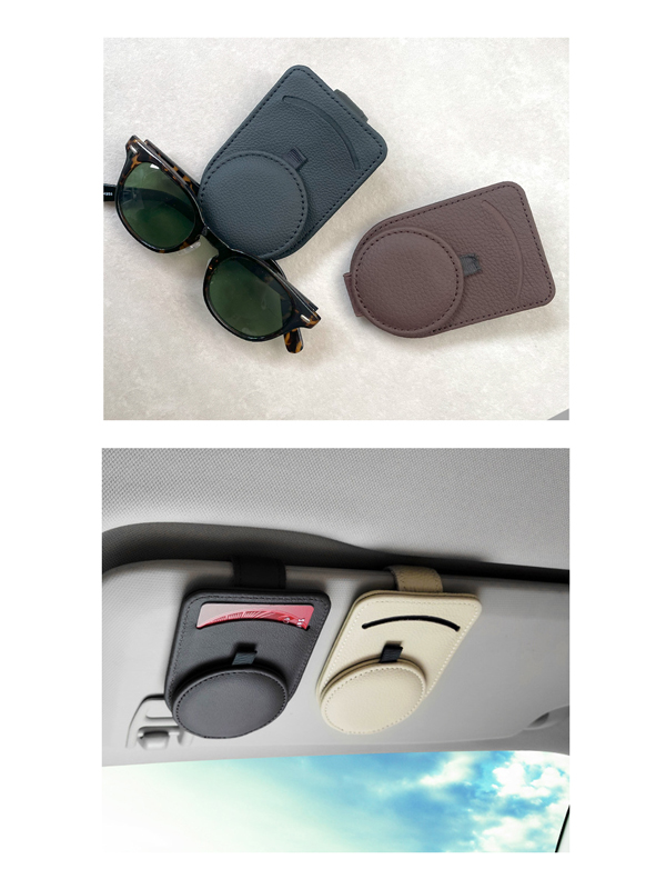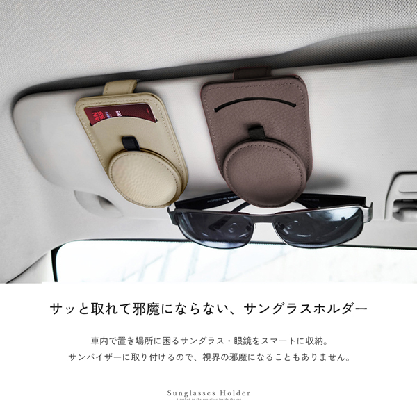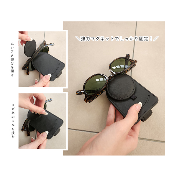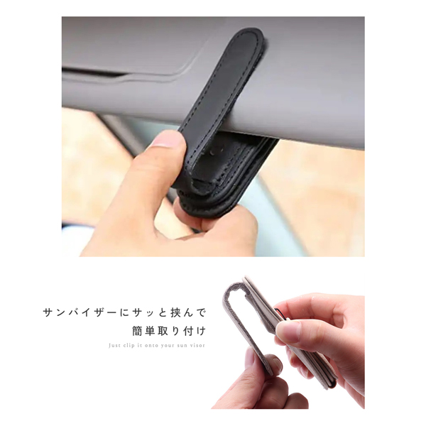 サングラスホルダー 車 メガネホルダー サングラス ホルダー フック式 マグネット 収納 サンバイザー メガネ ホルダー クリップ スタイリッシュ レザー コンパクト ケース 生活雑貨 便利グッズ ドライブ カードホルダー カード入れ ETC