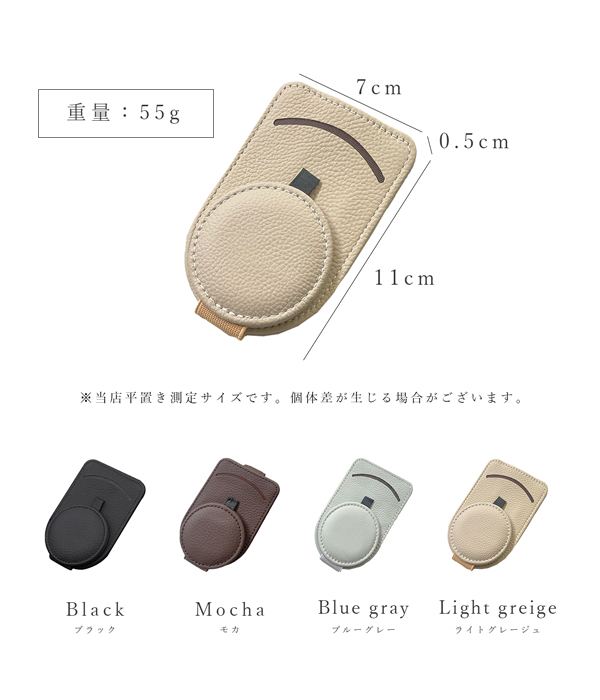 - モカを購入しました。大人色で落ち着きがあり、思っていたよりもしっかりしてて、良かったです! これからの季節、サングラスの使用頻度が多くなるので、すぐサッと付けられて収納出来るのは最高!です。配送も早く...