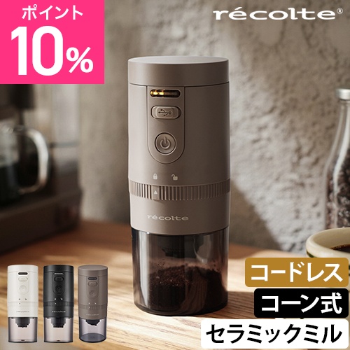 レコルト コーヒーミル コードレス コーヒーグラインダー RCM-3 電動ミル ミル コンパクト 小型 軽量 ポータブル 電動 自動 充電式 コーン式 セラミック おしゃれ アウトドア キャンプ オフィス recolte Cordless Coffee Grinder