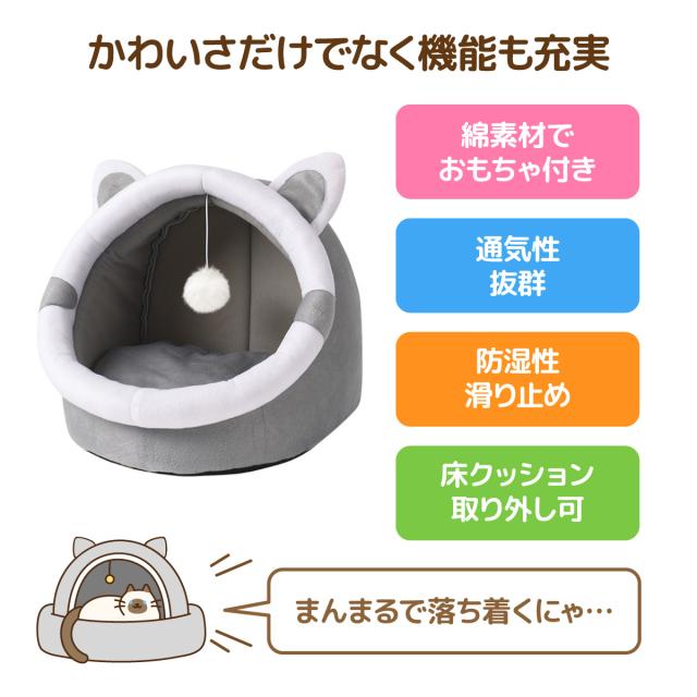 ペットベッド L Size 猫型 ドーム型 犬 猫 ベッド ハウス かわいい おしゃれ ドームハウス ペットハウス ベッド pet-bed-05 agesugi_sfp
