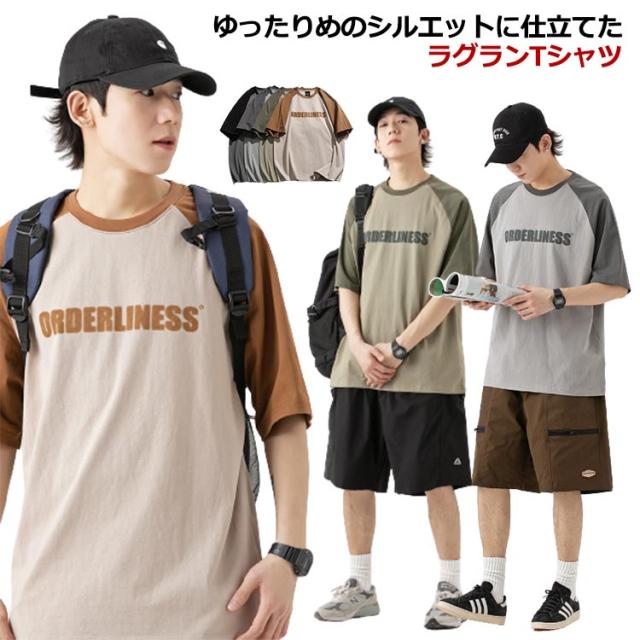 送料無料 ラグラン切り替え Tシャツ オーバーサイズ メンズ 夏Tシャツ ゆったり おしゃれ 半袖Tシャツ ラグラン袖 ビックシルエット クルーネック トップス カットソー 薄手 サラサラ 爽やか 夏 男性 サマーTシャツ カットソー シンプル カジュアル