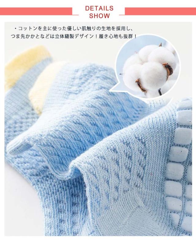 ベビー ソックス 6足セット メッシュ 滑り止め付き 靴下 送料無料 通気性 夏 赤ちゃん 靴下 男の子 女の子 コットン 綿 冷房対策 お出かけ 出産祝い ギフト プレゼント