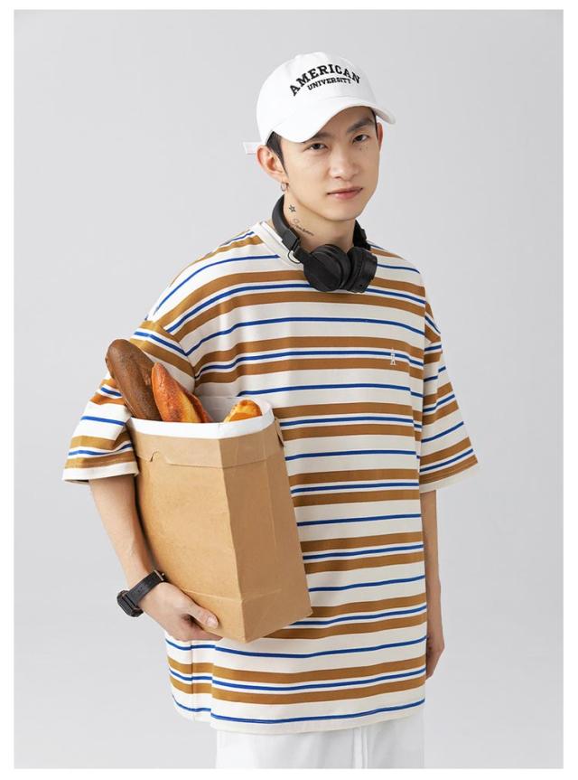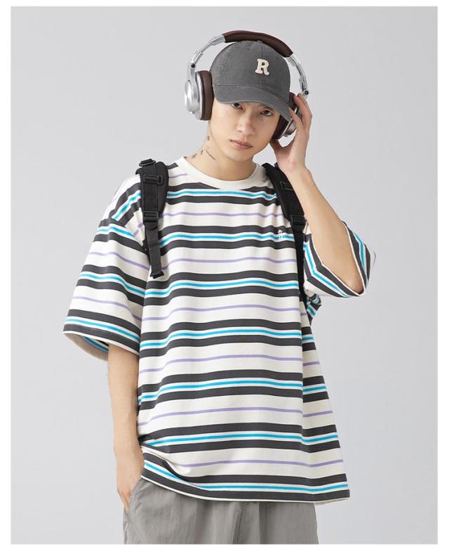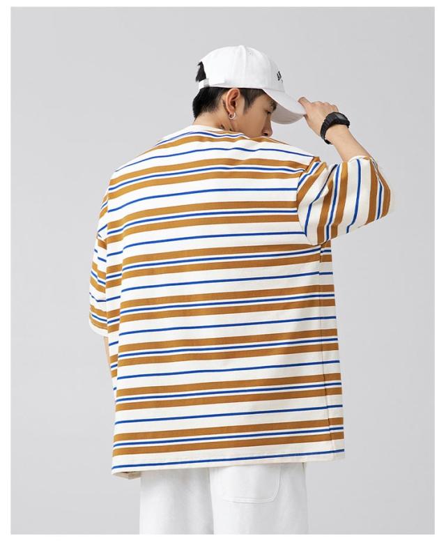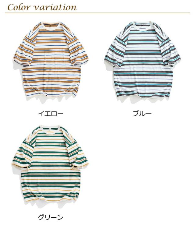 送料無料 tシャツ メンズ ボーダー 半袖tシャツ オーバーサイズ ゆったり Tシャツ クルーネック 綿 半袖 無地 春 夏 レトロ ユニセックス お揃い ビッグシルエット カジュアル おしゃれ 大きいサイズ