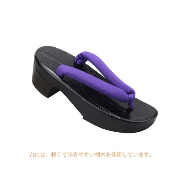 | 浴衣向けのレディース桐下駄。 鼻緒は、無地のコットン生地です。 台には、軽くて歩きやすい桐木を使用しています。 表面がコーティングされていますので、裸足でご使用される場合でもよごれにくくなっています。 夏祭りや花火大会の浴衣や、カジュアルな夏着物によくお似合いです。 | |