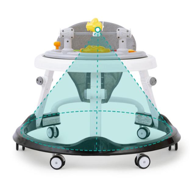 歩行器 赤ちゃん ベビーウォーカー 丸型 高さ調整可能 折り畳み式 歩く練習 歩行訓練 ベビー 歩行器 静音 車 乗り物 室内 室外 テーブル付き 食事用プレート付き 丸型歩行器 綿麻シート クッションシート 洗える かわいい